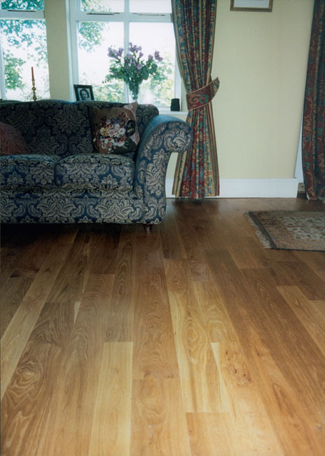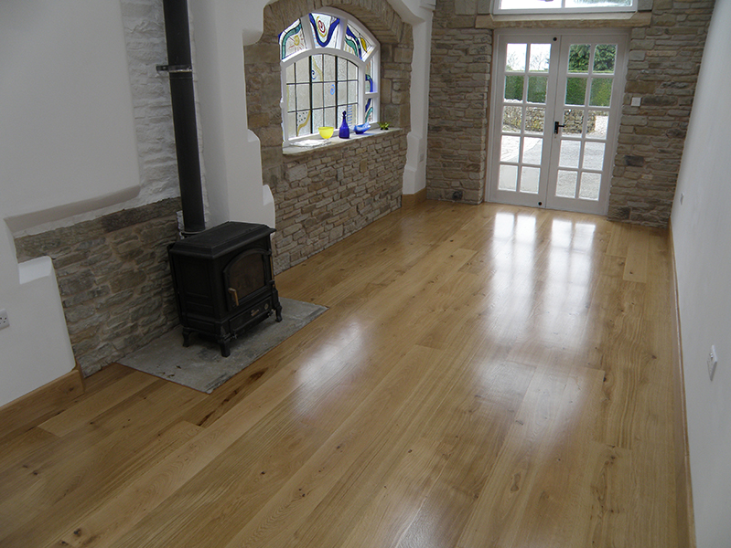 This random width oak floor looks completely at home in a country cottage, particularly with the hardwax oil finish, giving a deep rich golden colour, bringing out the figuring in the boards.