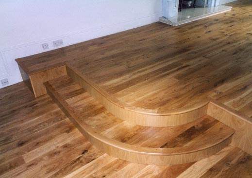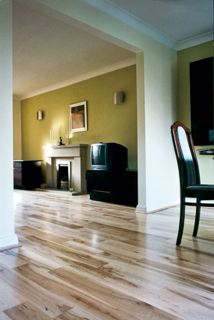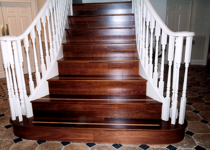 This flight of stairs was clad in Merbau, and a contrasting maple border, which ran around the landing floor, was continued down the stairs as a feature strip across each step.